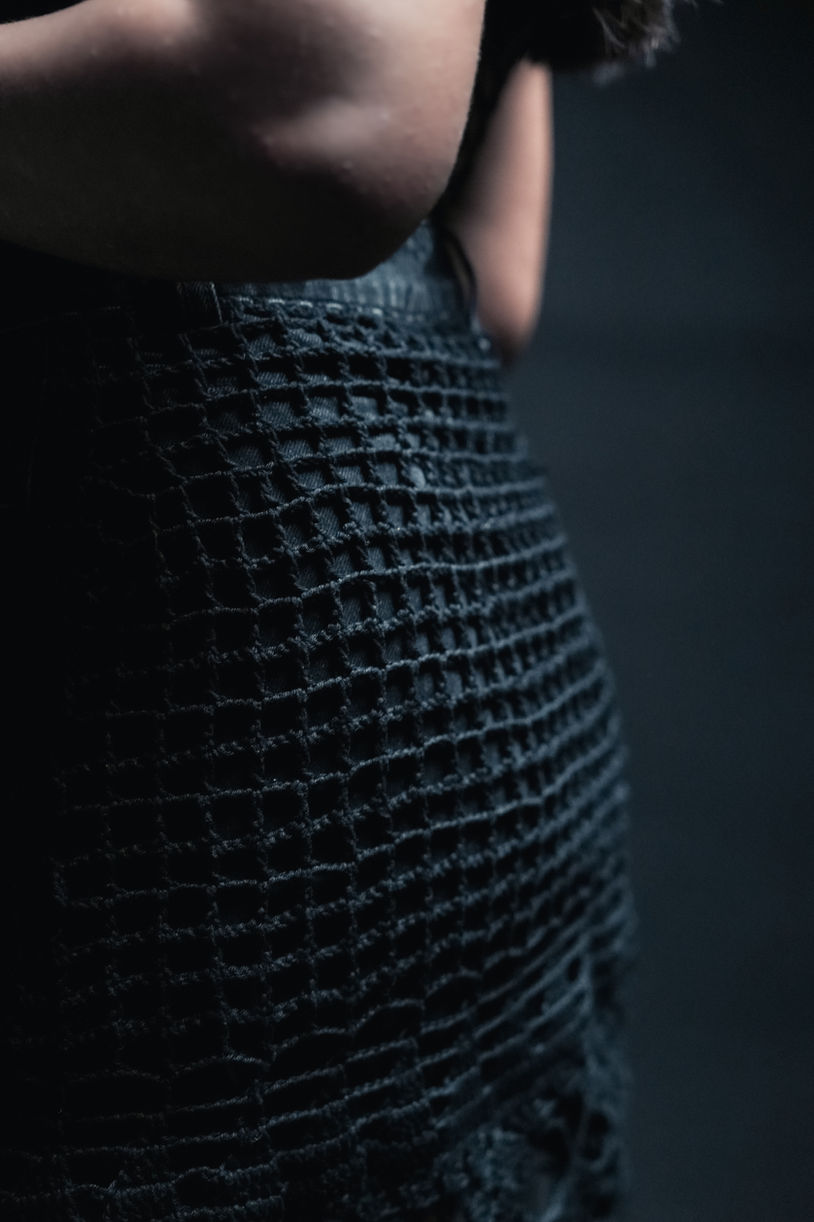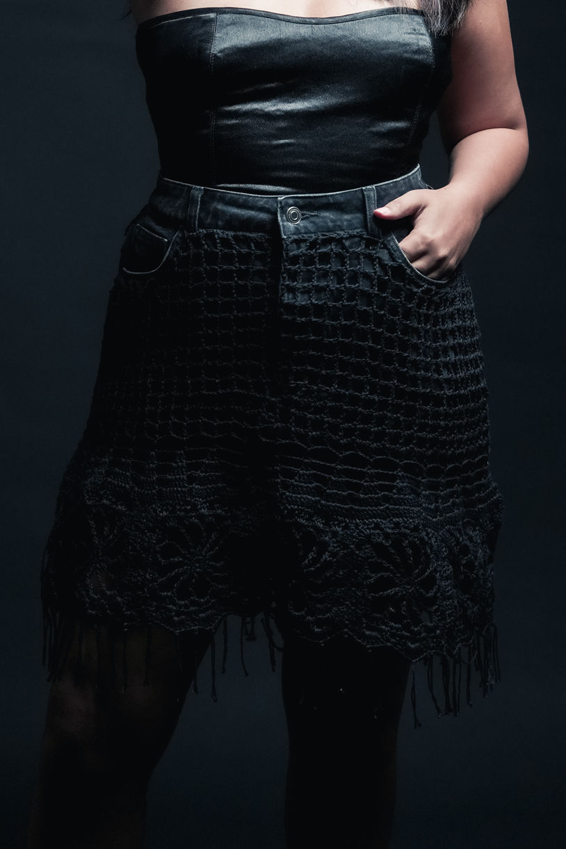 High-waisted black denim ripped with precision and intertwined with a sultry crochet pattern from thigh to hem. These jeans merge raw edge and delicate artistry, crafted for the woman who craves obsession-worthy detail and refuses to play by anyone’s rules.